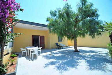 Dispon.20/06-01/08#22/08-06/09 TORRE SAN GIOVANNI (Ugento) nel magico Salento, località molto rinomata, villetta indipendente situata al Centro della marina, ma allo stesso tempo in una via tranquilla che non risente della movida serale.A100mt.dal lungomare(Corso Annibale) bassa scogliera e 400m.dalle splendide spiagge sabbiose fine e bianchissima lunga oltre 10 km e può ospitare fino a un massimo di 8 persone. La villetta è composta da ampio giardino recintato con parcheggio interno, camino barbecue e arredo x pranzare o cenare all'aperto; ampia sala con angolo cottura attrezzata di stoviglie, pentolame, tovagliato, TV color 40 Pl ventilatore a soffitto e divano letto matrimoniale; 2 grandi camere climatizzate ciascuna con 3 posti letto, 2 bagni con box doccia di cui uno in camera; ripostiglio, zanzariere, lavatrice, asciugacapelli, asse e ferro da stiro, una grande doccia esterna con acqua calda, stenditoio, pilozza e 3 biciclette. Torre San Giovanni si Trova sulla costa jonica salentina tra Santa Maria di Leuca e Gallipoli, incantevole spiagge di sabbia finissima tra cui la famosa Maldive del Salento. È al centro dei servizi essenziali: supermercati, ristorante, bar, negozi, pizzerie, trattoria con prodotti tipici Salentini, acqua park, pista Salentina di go-kart e pattinaggio, porto turistico, bancomat, farmacie, pronto soccorso ecc. Nelle immediate vicinanze ci sono agenzie che si occupano di noleggio e imbarcazioni, scooter, tandem e bici. A due passi troviamo il meraviglioso lungo mare, fiore all'occhiello della marina attrezzato con estese area servizi x manifestazioni serali che si susseguono numerose nel corso della stagione estiva e giochi di ogni genere x bambini. Incantevoli inoltre i mercatini settimanali in cui si possono trovare creazioni artigianali e prodotti tipici della nostra terra. La villetta è curata e accogliente massima disponibilità e serietà. CIN IT075090C200106026