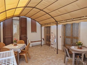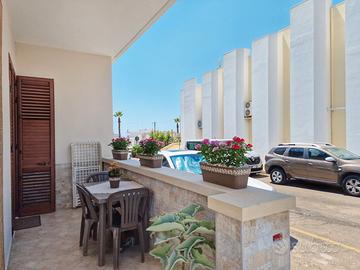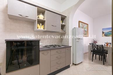 Inserito in un contesto bifamiliare con ingresso in comune con altro appartamento più piccolo di 3 posti letto, questo appartamento molto grazioso, curato nell'arredo, ideale per famiglie di max 8 persone, si trova proprio in centro, località Marina di Mancaversa, in via Como 2, di fronte alla chiesa, con tutti i servizi ed il mare a portata di mano. Si può affittare anche insieme all'appartamento accanto con cui condivide gli esterni quando si è più di una famiglia, per un totale poi di 12 posti letto. POSIZIONE: Via Como 2, Mancaversa a soli 100 metri dallo scoglietto basso e 150m dalla caletta di sabbia chiamata "canale delle donne", zona centralissima con tutti i servizi a portata di mano quali: friggitorie, pescherie, alimentari, bar ecc. Dista 3,5 km dalle spiagge di Gallipoli, 1,5km da Lido Pizzo, 3km da Lido Punta della Suina, e 10km dal centro della bella Gallipoli. Percorso naturalistico nelle immediate vicinanze che porta fino a Lido Pizzo, riserva naturale del WWF, a 2 passi anche il piccolo lungomare con il mercatino serale del mercoledì sera e area giochi per bimbi. COMPOSIZIONE STRUTTURA: L'appartamento, climatizzato nelle 2 camere triple dispone di un piccolo spazio di pertinenza aperto vicino all'ingresso dell'appartamento più piccolo dicimo che il passaggio è uso comune tra i due appartamenti quando vengono affittati singolarmente e separatamente.. (vedasi foto con le frecce) , ha: due ingressi: uno dal balcone fronte strada che porta direttamente in una delle camere e altro ingresso dalla cucina area comune spazi esterni piccolo appart. una cucina con tv schermo piatto, con divano e fornetto elettrico oltre al forno. 2 camere triple con tv, con bagno in camera cadauna camera con doccia con tenda (no box) al piano superiore vi è poi una cameretta con 2 letti non climatizzata ma dotata di ventilatori mobili ed un terrazzo attrezzato per serate spensierate. phon in camera IT075085C200109940
