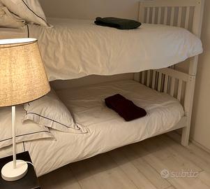 ampio alloggio composto da 3 camere da letto, 2 matrimoniali e una con letto a castello. bagno con doccia ,Comodo salotto con zona pranzo separata e completo di cucina attrezzata. Situato in un punto perfetto, ideale per una famiglia di 6 persone fino a 8 posti letto con il divano letto matrimoniale posto auto privato Attività commerciali / servizi vicini