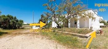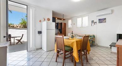Grazioso e ben curato appartamento, piano leggermente terra, all'interno di una villetta bifamiliare, con giardino e spazi esterni propri, posto nel cuore di Torre Suda , in via Orties, a 150m dai servizi, 200m dallo scoglio e 4km dalle spiagge di Gallipoli.