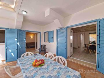 L'appartamento è composto da 2 cucine moderne con piano cottura ad induzione, 4 camere da letto doppie, 3 bagni con doccia e 2 docce esterne, vano lavanderia con lavatrice. Climatizzato nelle cucine. Molto fresco perchè situato al piano sottoposto.