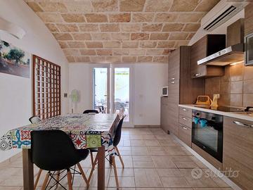 Moderni appartamenti suddivisi in 2 unità separate di circa 75mq cadauna, situati in piano ribassato rispetto al livello della strada in località Marina di Mancaversa, situato in via Sirmione 5 a due passi da Gallipoli in un contesto residenziale tranquillo ideale per famiglie al contempo al centro del paese, non affittabili singolarmente perchè con spazi esterni sul davanti condivisi, attrezzate di cucina a induzione entrambe, con un'area lavanderia in comune dei due appartamenti.
