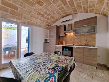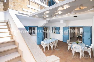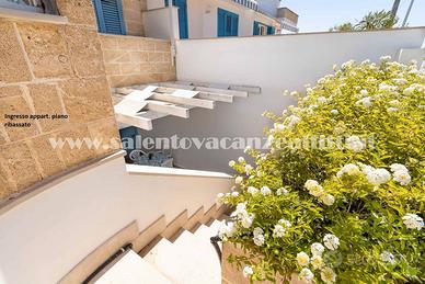 Moderni appartamenti suddivisi in 2 unità separate di circa 75mq cadauna, situati in piano ribassato rispetto al livello della strada in località Marina di Mancaversa, situato in via Sirmione 5 a due passi da Gallipoli in un contesto residenziale tranquillo ideale per famiglie al contempo al centro del paese, non affittabili singolarmente perchè con spazi esterni sul davanti condivisi, attrezzate di cucina a induzione entrambe, con un'area lavanderia in comune dei due appartamenti. LA ZONA: La zona permette di raggiungere facilmente anche altre marine, come Torre San Giovanni, dove vi sono spiagge meravigliose ed un lungomare pieno di negozi e trattorie, che dista circa 10km, mentre dall'altro lato Gallipoli, la perla dello Jonio. La marina è una piccola località turistica sul versante Jonico del Salento, appena sotto Gallipoli, dalla quale dista 3km dalle sue spiagge e 10km dal suo centro, 1,5km da Lido Pizzo, riserva naturale e oasi di spiaggia tipo Maldive, 3km dal lido Punta della Suina. COMPOSIZIONE APPARTAMENTI: L'appartamento è composto da 2 cucine moderne con piano cottura ad induzione, 4 camere da letto doppie, 3 bagni con doccia e 2 docce esterne, vano lavanderia con lavatrice. Climatizzato nelle cucine. Molto fresco perchè situato al piano sottoposto. Gli Appartamenti distano 120m dal lungomare costellato da calette di sabbia e scoglietto basso misto, mare cristallino, facilmente balneabile anche ai bambini, molto frequentato da famiglie, sul lungomare sono presenti anche i giochi per bambini e la sera molte famiglie passeggiano con i loro piccoli portandoli alle giostrine, il mercoledì sera vi è il mercatino nostrano locale per cui le strade vengono chiuse al traffico. I Servizi, come supermercati Sisa, bar-tabacchi e giornalaio e la pizzeria Bubba sono a 100m dalla casa, poi a circa 400m troverete altri servizi della marina, friggitoria, bar colazioni, distributore benzina, pescheria e ristorantini . IT075085C200043675