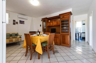 Grazioso e ben curato appartamento, piano leggermente terra, all'interno di una villetta bifamiliare, con giardino e spazi esterni propri, posto nel cuore di Torre Suda , in via Orties, a 150m dai servizi, 200m dallo scoglio e 4km dalle spiagge di Gallipoli.