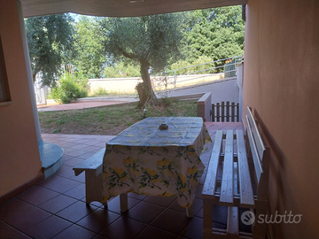 L'appartamento è sito al piano terra di una villa privata,con ingresso indipendente e porzione di giardino recintato ad uso esclusivo dell'appartamento. Tavolo e sedie da esterno.