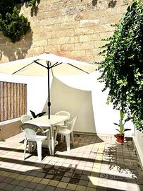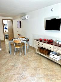 A 30 metri dal mare, nella splendida cornice della suggestiva marina di Mancaversa, e dalla spiaggetta dei Cavalli (una insenatura di sabbia fine, in prossimità delle più belle spiagge del Salento (1,5 km dal lido Pizzo - Baia verde) si affitta grazioso BILOCALE finemente arredato e climatizzato, composto da un ampio soggiorno con divano letto matrimoniale ed angolo cottura, camera da letto matrimoniale, bagno con box doccia e piccolo cortiletto interno arredato con tavolo e ombrellone. La soluzione è dotata di TV in ogni camera, frigorifero , lavatrice, zanzariere e lavatoio esterno. Acqua da acquedotto pubblico e non da cisterna. La soluzione è ideale per quattro persone. Si accettano animali di piccola taglia. Si affitta per periodi di una o più settimane con arrivi e partenze nella giornata di sabato. I prezzi variano in base alla settimana e al periodo.