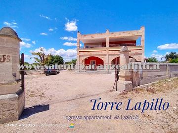 Moderni appartamentini siti in un complesso di appartamenti multifamiliari, ognuno dei quali con il proprio spazio indipendente a 550m dalla spiaggia libera di Torre Lapillo vicino a Porto Cesareo in via lazio 53.