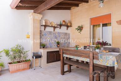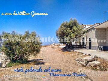 Grazioso villino di circa 70mq sul mare in centro a Marina di Mancaversa, vicino Gallipoli, solo 30m dal mare con scoglietto e calette di sabbia, versante jonico del Salento. POSIZIONE: Via Venezia 38, Mancaversa a soli 30 metri dallo scoglietto basso e 100m dalla caletta di sabbia chiamata "canale delle donne", zona centralissima con tutti i servizi a portata di mano quali: friggitorie, pescherie, alimentari, bar ecc. Dista 3,5 km dalle spiagge di Gallipoli, 1,5km da Lido Pizzo, 3km da Lido Punta della Suina, e 10km dal centro della bella Gallipoli. Percorso naturalistico nelle immediate vicinanze che porta fino a Lido Pizzo, riserva naturale del WWF, a 2 passi anche il piccolo lungomare con il mercatino serale del mercoledì sera e area giochi per bimbi. COMPOSIZIONE STRUTTURA: La casetta, climatizzata in cucina, stanza intermedia e camera, dispone di un piccolo giardinetto di pertinenza, con 2 ingressi su 2 strade diverse, rispettivamente da via Venezia n. 38 e via Capri n. 5. Ingresso principale da via Venezia 38: corridoio e camera matrimoniale, stanza intermedia ad angolo con 2 lettini singoli, dalla quale si passa x accedere in cucina e al bagno climatizzata, 1 bagno doccia e una cucina con tv schermo piatto. Spazio esterno sul retro attrezzato con gazebo x pranzi e cene all'aperto, con barbecue per serate in relax. Posto auto libero per strada nelle vicinanze. 3 split climatizzazione in casa, consumi a parte calcolati a € 0,50 centesimi kw/h . Per le utenze (consumi) si abbonano 100kw a settimana, superati i quali si fa lettura contascatti con conteggio € 0,50 kw/h IT075085C200037663