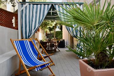 Situato al piano terra in zona Principessa a pochi passi dalla spiaggia libera e attrezzata, il bilocale, dotato di zanzariere, dispone di un gazebo privato con tavolo, sedie e poltrone. E' composto da cucina pranzabile con forno, frigo e congelatore, kit pulizie, tv e wifi, camera matrimoniale con letto a castello e aria condizionata, bagno con box doccia. Locale esterno a ttrezzato a lavanderia, ampio giardino condominiale attrezzato con tavoli, barbecue e doccia. Nelle vicinanze edicola e alimentari. Biancheria da letto e bagno su richiesta.Questa è una soluzione Pet friendly dove é ammesso un solo animale di piccola taglia: cortesemente Vi preghiamo di essere rispettosi degli arredi, di volervi dotare di teli divano se il vostro cane é abituato a salirvi e non arrecare disturbo ai vicini.