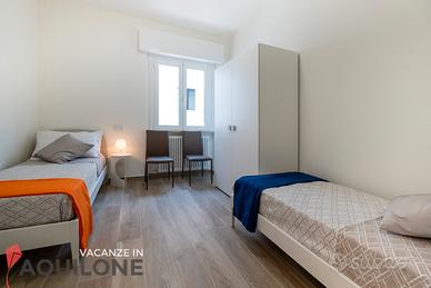 1 camera matrimoniale, 1 con 2 singoli, angolo cottura/soggiorno con divano letto e servizi;