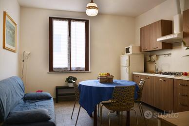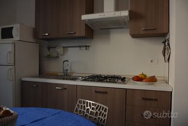 L'alloggio è composto da un bilocale e un trilocale comunicanti per un totale di 12 posti letto. Due bagni e terrazzo.