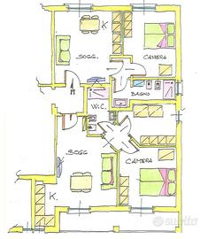 5 vani con terrazzo-due bagni- centrale-30 mt mare