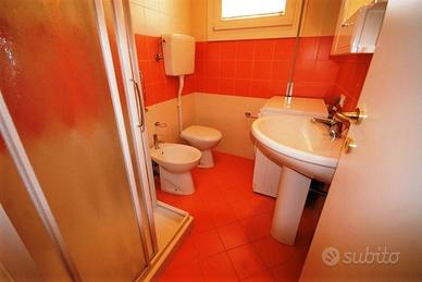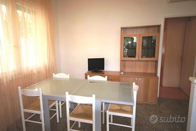 Tranquillo trilocale al 1° e unico piano senza ascensore: n.1 camera grande matrimoniale con terzo letto aggiunto, n.1 cameretta con 2 letti singoli, soggiorno-pranzo con divano letto, angolo cottura, bagno con box doccia e lavatrice, TV, aria condizionata, comodo terrazzo abitabile affacciato sulla zona pedonale, n.1 posto auto numerato, n.1 posto spiaggia. Totale posti letto: 5