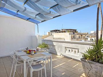 Grazioso attico sito al secondo piano di una palazzina senza ascensore in via dei coralli 1 a Lido Conchiglie, frazione di Gallipoli, a soli 30m dalla spiaggia libera e attrezzata e a 70m da tutti i servizi, quali parafarmacia, bar, tabacchi e supermarket e forno. LOCALITA' E DINTORNI: Una piccola località a due passi dalla bella Santa Maria al Bagno, dalla quale dista pochissimi km e da Gallipoli dalla quale dista 8 km. A 4,7km vi è il parco acquatico Splash per far divertire i vs bambini. A circa 7km troverete la bellissima Santa Caterina, una località turistica con tante ville antiche ed un percorso ciclo pedonale che la collega con S. Maria al Bagno. COMPOSIZIONE APPARTAMENTO: Gli appartamenti di circa 75 mq cadauno, sono così composti: ingresso con salottino cucina abitabile, attico con spazio esterno per vivere l'aria di mare 2 camere da letto, ( una matrimoniale e una con 2 singoli) un bagno con doccia spaziosa con tenda, posto auto libero sulla strada fronte casa. split clima presenti nelle camere SPESE PULIZIE € 60,00 OBBLIGATORIE, ANIMALI NON ACCETTI, SU RICHIESTA SOLO PICCOLA TAGLIA CON SUPPLEMENTO DI € 50,00 BIANCHERIA NON INCLUSA, SU NOLEGGIO EURO 20 PERSONA appart. con LAVATRICE uso comune, piano sottostante gli appartamenti. IT075031C200066107