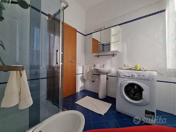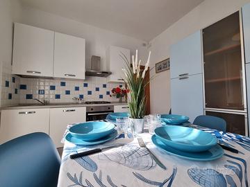Zona conchiglia in villetta di due livelli appartamento al piano primo con accesso da scala interna. L'edificio è stato recentemente ristrutturato e l'appartamento si presenta in un contesto tranquillo a 50 metri dal mare, in un quartiere semicentrale distante 400 metri dall'isola pedonale. A pochi passi si trovano due tra i migliori ristoranti e stabilimenti balneari di San Vincenzo mentre davanti alla casa la spiaggia è libera. L'appartamento di circa 50 mq. si sviluppa su un unico piano ed è composto da soggiorno pranzo con angolo cucina con divano letto 2 posti, zona TV, frigo con congelatore, forno statico e forno microonde. Completano una ampia camera con letto matrimoniale e letto singolo oltre a bagno con doccia (disponibili complessivi 5 posti letto). Per quasi tutta la lunghezza dell'appartamento, sul lato est è presente una balcone/terrazza con tende ombreggianti con tavolo e sedie. L'appartamento è dotato aria condizionata (con conteggio a consumo). Le locazioni sono settimanali e vanno da sabato a sabato. Disponibile da maggio a ottobre. AL MOMENTO DISPONIBILE A GIUGNO SINO AL 13, NEL PERIODO 4/18 LUGLIO E DAL 22/29 AGOSTO