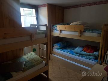 L'appartamento è così composto: soggiorno con angolo cottura (dotato di fornelli a gas, forno tradizionale, frigorifero, lavastoviglie e lavatrice) con divano letto matrimoniale, camera con letto matrimoniale, seconda camera con 2 letti a castello e quinto letto estraibile, bagno con doccia. In totale sono 9 posti letto.