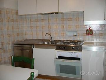 A circa 100mt. dalla spiaggia, al piano terra con ampio spazio esterno attrezzato per pranzare, appartamento composto di ingresso, salotto, cucina abitabile completa di lavastoviglie, camera da letto matrimoniale, due camere doppie, un bagno grande con box doccia, un bagnetto di servizio, ripostiglio con lavatrice.