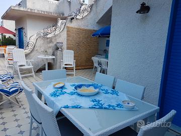 In una bella villa in stile mediterraneo dotata di max 6 posti letto (n.ro 1 camera matr., n.ro 1 camera con 2 letti singoli, n. 1 ampio living con divano letto matr., cucina abitabile e 2 ampi bagni) affittasi per vacanze, nella Baia di Tindari a 30 metri dalla spiaggia libera e dai lidi attrezzati esistenti, terrazzo, parcheggio interno, giardino recintato ideale per bambini con spazio ombreggiato ed attrezzato, relax assicurato a 300 metri dal centro del paese. Sul mare, di fronte alle isole Eolie, nei pressi dei Laghetti di Marinello gode del panorama della Rupe di Tindari. Possibilità di parcheggio interno.