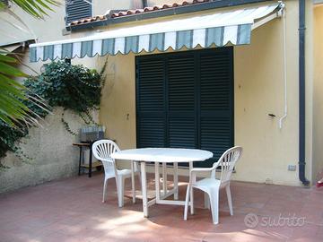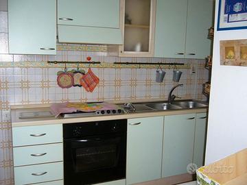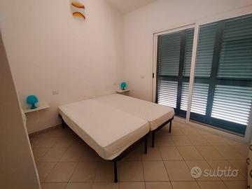 A circa 40mt. dalla spiaggia, appartamento con ampio spazio esterno attrezzato composto da cucina abitabile, salotto con divano letto matrimoniale; camera da letto matrimoniale, camera doppia, bagno con box doccia, ripostiglio con lavatrice al piano terra; con affaccio in salotto soppalco con finestra dove è stata creata una camera da letto matrimoniale. TV.