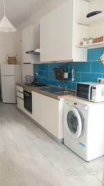 accessoriata di tutto: utensili da cucina, forno, forno a microonde, frigo con freezer, piano cottura e kappa, bollitore, piccola piastra per tostare, moka e macchina da caffè Espresso, TV a schermo piatto, climatizzatori in ogni stanza, Wifi, asciugacapelli, lavatrice, stendipanni, asse e ferro da stiro e ombrellone.