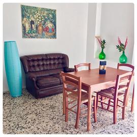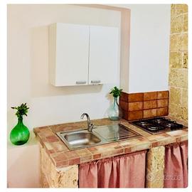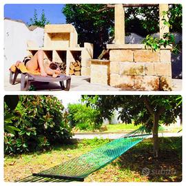 In Salento a soli 500 mt dalla spiaggia appartamento in villa arredato e dotato di tutti i comfort composto da: ingresso su soggiorno con divano e parete attrezzata, servizio, zona giorno, camera da letto matrimoniale, altra camera da letto con due letti singoli, area esterna attrezzata sotto patio, ideale per due, quattro o cinque persone.