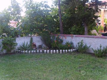Entrata indipendente, giardino e veranda. E' composto da una stanza matrimoniale e una stanza con due letti (trasformabile in matrimoniale), bagno con finestra (provvisto di lavatrice), cucina-soggiorno, terrazza coperta comoda per la cena e provvista di una tenda da sole, di un tavolo con sedie da esterni, barbecue e di un salottino con comodi cuscini. Riserva idrica di 2000 litri.