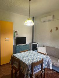 Entrata indipendente, giardino e veranda. E' composto da una stanza matrimoniale e una stanza con due letti (trasformabile in matrimoniale), bagno con finestra (provvisto di lavatrice), cucina-soggiorno, terrazza coperta comoda per la cena e provvista di una tenda da sole, di un tavolo con sedie da esterni, barbecue e di un salottino con comodi cuscini. Riserva idrica di 2000 litri.