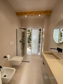 La villetta , situata all'interno di un parco privato, comprende un giardino lato mare di 120 mq con doccia esterna calda, barbecue , arredamento esterno, ombrelloni x pranzare in giardino, sdraio zona relax, autoclave e discesa direttamente sulla spiaggia dal giardino,ideale per I bambini .