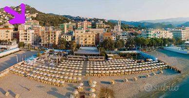 E' presente uno splendido terrazzo, che collega la porta-finestra della cucina con la porta-finestra del soggiorno. Da qui si ha una rilassante vista sui giardini sottostanti, con vista mare laterale.