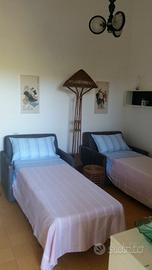 Piano terra con ampio spazio esterno, composto di ingresso salotto con due poltre letto singolo, cucinotto, camera da letto matrimoniale, bagno con box doccia.
