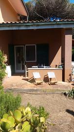 Piano terra con ampio spazio esterno, composto di ingresso salotto con due poltre letto singolo, cucinotto, camera da letto matrimoniale, bagno con box doccia.