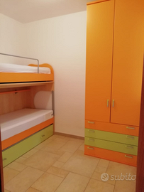Disponibile SOLO dal 27 luglio al 3 agosto, appartamento al primo piano composto da soggiorno pranzo, camera da letto, cameretta con tre posti letto, bagno e ampia veranda attrezzata. Dispone inoltre di aria condizionata, zanzariere, tende da sole, lavatrice, stoviglie.