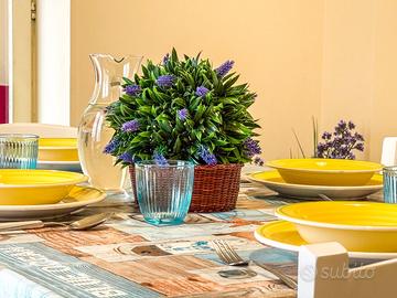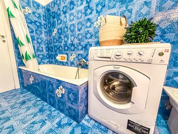 L'unità abitativa dispone di lavatrice, forno, frigorifero con congelatore, terrazzo/balcone attrezzato di tavolo e sedie per i soggiorni estivi, bagno con box vasca, stoviglie ed accessori complete, tv con digitale terrestre. Possibilità di noleggio biancheria da letto e da bagno.