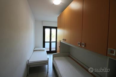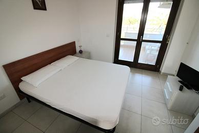 Appartamento al piano secondo (int. 19) con soggiorno con angolo cottura e divano letto matrimoniale, disimpegno, bagno con doccia e velux a soffitto, due camere da letto di cui una matrimoniale ed una doppia, terrazzi per complissivi mq 40 attrezzatoi per i soggiorni estivi Posto auto privato al piano interrato. 6 posti letto. Esposizione est - ovest.