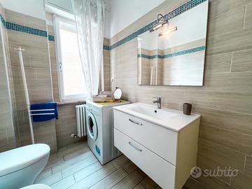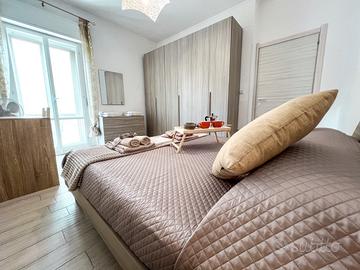 Oslo Apartment, Appartamento Via Giordano, 10 metri dal mare. Piano primo rialzato. Ingresso, ampio soggiorno con divano letto matrimoniale ed angolo cottura, tre camere da letto matrimoniali, due bagni entrambi con doccia e finestra, due balconi. Vista mare. Garage per utilitaria al piano terra. Posti letto 6/7.