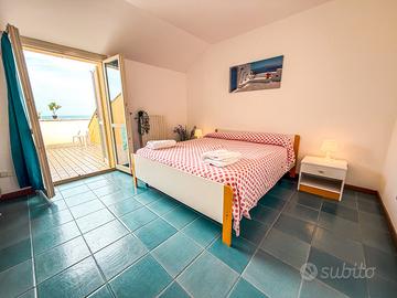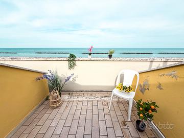 Appartamento sito in Via Taffetani n. 9, a 5 metri dal mare. Piano primo e secondo con ingresso indipendente. Residenza "Olimpia" composto da: ingresso su soggiorno con angolo cottura e divano letto, esso affaccia su uno splendido balcone terrazzato fronte mare, camera da letto matrimoniale, bagno con doccia; al secondo piano abbiamo due ulteriori camere da letto e un bagno con doccia e velux. 8 posti letto.