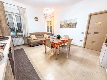 Columbia Apartment, San Benedetto Del Tronto, Via Cola di Rienzo, 100 metri dal mare. Piano terra rialzato. Ingresso su soggiorno/cucina open space, due camere da letto di cui una spaziosa matrimoniale ed una tripla con letto a castello ed un letto estraibile, bagno con docciia, disimpegno con armadio attrezzato con lavanderia. Posti letto n. 5.