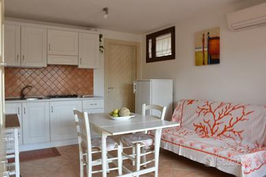 Grazioso appartamento ideale per una coppia, composto da soggiorno-cucina con divano letto, camera da letto, bagno padronale con doccia, veranda ombreggiata adiacente l'ingresso con doccia esterna e arredi da giardino, aria condizionata, tv, lavatrice, forno a micronde, riserva idrica, parcheggio fronte casa, Wi Fi.