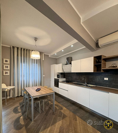 Ampio soggiorno con cottura, camera matrimoniale, cameretta, due bagni, ripostiglio, due terrazzi e posto auto privato a 200 metri