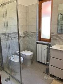 - APPARTAMENTO 2: ingresso; soggiorno con cucina (con piano cottura, forno, lavello, macchina Nespresso per il caffè) e divano letto (a seconda della configurazione scelta sofà o divano letto 140x200) che si affaccia su balcone con tavolino e sedie; bagno (doccia, lavabo, wc, bidet); poi si accede al piano superiore tramite scala a chiocciola e vi si trova la camera da letto matrimoniale (160x200), allo stesso piano ancora un bagnetto (lavabo, wc, bidet).