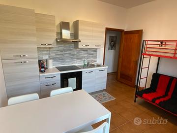 - APPARTAMENTO 1: corridoio di ingresso; camera da letto matrimoniale (160x200) che si affaccia sul balcone; soggiorno con cucina (con piano cottura, forno, lavello, macchina Nespresso per il caffè) e divano letto (a seconda della configurazione scelta sofà o divano letto 140x190 e sopra letto singolo 90x190) anch'esso affacciato al balcone con tavolino e sedie; bagno (doccia, lavabo, wc, bidet).