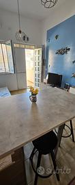 L'appartamento è a piano terra, composto da un piccolo terrazzo, entrata soggiorno con cucina a vista, una camera matrimoniale, bagno, e un ampio terrazzo.