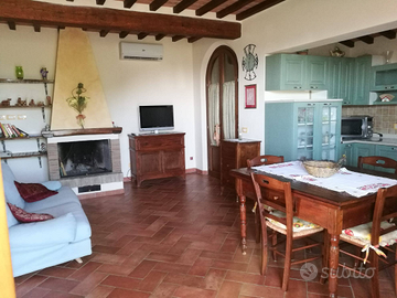 L'Aia di Maria è la base perfetta per chi decide di passare le sue vacanze in completo relax ed a stretto contatto con la natura. L'appartamento è distante circa 20 km da Siena, 20 km da Montalcino, da tutta la val d'Orcia e dalle crete senesi. In origine era una rimessa per i trattori: Nel 2007 l'abbiamo completamente ristrutturata ricavandoci una cucina soggiorno con camino in mattoni, un bagno, una camera matrimoniale ed una camerina; salendo poi alcuni scalini si arriva al primo piano dove troverete una mansarda con uno splendido lucernario, un letto matrimoniale, un bagno ed un locale lavanderia. Davanti alla casa troverete un'aia dove è posizionato un barbecue, una tettoia per le macchine ed alcuni giochi per bambini. L' aia è completamente recintata ideale per chi ha con se degli animali. A due passi dall'abitazione potete visitare il castello di Murlo con il suo museo etrusco, il paese vescovado di Murlo dista circa 1km.