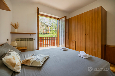 Si affitta Villetta con giardino e box privato a Bratto, disposta su 3 piani (2 + taverna) composta da 2 camere da letto, sala e cucina attrezzata, 2 bagni e taverna.