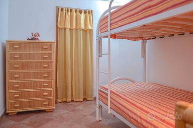 AFFITTASI TRILOCALE completamente ristrutturato, con volte a botte, in villa, ideale per famiglie o gruppo di amici, situato a 300 m dalla meravigliosa spiaggia libera e attrezzata di Posto Vecchio, graziosa marina Ionica, punto di incontro estivo per giovani e famiglie che non vogliono rinunciare al divertimento e allo stesso tempo alla tranquillità che offrono le dune e la lussureggiante vegetazione. La spiaggia di sabbia finissima e bianca scenario di un mare azzurro e cristallino conserva ancora le sue caratteristiche naturali ed è per questo da molti definita "Le Maldive del Salento". Non è raro di tanto in tanto nel verde della macchia incappare nei gigli delle dune che la leggenda vuole come custodi del mare. La Marina è stata insignita delle quattro vele di Legambiente e Touring Club Italiano per la pulizia del mare e la qualità dei servizi turistici. Assicura inoltre ampi parcheggi custoditi e alberati, stabilimenti balneari, chioschi, noleggio pedalò, visite guidate alle grotte, escursioni, immersioni, bar e servizi vari. Posto Vecchio, inoltre, sorge a pochi minuti dalle marine di Pescoluse e Torre Vado, raggiungibili entrambe a piedi in cinque minuti, piene di chioschi, locali, luoghi di incontro, mercati, mercatini locali, e giochi per divertire i più piccoli. La posizione strategica e nevralgica permette quindi di scegliere senza utilizzare la macchina dove trascorrere le calde serate estive. Composto da 1 camera da letto matrimoniale, 1 camera con letto a castello climatizzata, all'occorrenza disponibilità di un altro lettino, stanza da pranzo con cucina, TV con satellitare, bagno con angolo doccia, zanzariere, giardino con spazio riservato e possibilità di mangiare fuori, posto auto, barbecue, lavatrice. Arredamento SABBIA