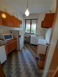 Grazioso appartamento fresco e luminoso al piano terra di una villa nel centro di Saint-Vincent. L'alloggio è composto da soggiorno con divano letto, camera con due letti, uno matrimoniale e uno singolo, cucina, disimpegno e bagno. Nel cortile di pertinenza, chiuso da cancello, è possibile parcheggiare l'auto così come nel box adiacente.