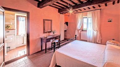 CAMPO AL VENTO - Casale di 900 mq su 3 piani che si estende su una proprietà di 12 ettari privati con parco, ulivi e vigneto in località Monte Castello di Vibio.