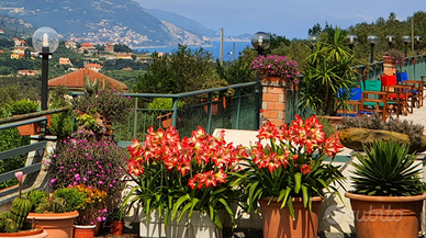 Affittasi appartamenti a schiera con terrazza e piscina, immersi nella natura ligure, in posizione panoramica, da cui si può godere una vista fantastica dalle prealpi liguri al litorale costiero da Loano a Varigotti.