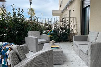 Benvenuti a Roseto degli Abruzzi, cittadina ideale per chi ama il mare e la natura. Alba Marina 1 è la casa vacanza che consigliamo a chi ha il piacere di avere la spiaggia a pochi passi. L'appartamento, situato al piano terra di una palazzina moderna con ascensore, è pensato per offrire il massimo del comfort: - Soggiorno con angolo cottura attrezzato - Camera matrimoniale e cameretta con letto a castello - Bagno moderno con box doccia - Ampia corte esterna attrezzata per pranzi e cene all'aperto - Seconda corte esterna con accesso diretto al posto auto - 4 posti letto (con possibilità di aggiungerne un quinto) - Aria condizionata, lavatrice e lavastoviglie per avere tutte le comodità Posizione: - A soli 30 metri dalla spiaggia di sabbia fine, ideale per famiglie e bambini - Lungomare pedonale per le tue passeggiate o pedalate in bicicletta - Vicino a lidi attrezzati e ristoranti tipici Parcheggio riservato per la tua tranquillità, dimentica l'auto e goditi la vacanza! Scopri Roseto degli Abruzzi: Oltre alla sua comoda spiaggia, Roseto offre: - Escursioni panoramiche tra le colline e il vicino Parco Nazionale del Gran Sasso - Cucina tipica abruzzese, con arrosticini e pesce fresco nei ristoranti locali - Eventi estivi e mercatini sul lungomare centrale, per vivere l'atmosfera autentica della Riviera Adriatica Prenota ora il tuo soggiorno a Roseto degli Abruzzi, non è solo una vacanza ma un posto in cui tornare ogni estate!
