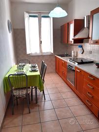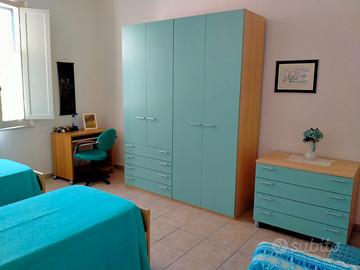 L'appartamento si trova al primo piano di un piccolo stabile in una via tranquilla e silenziosa, a cinque minuti dal centro, è fresco e luminoso. E' composto da un soggiorno, un'ampia camera matrimoniale, una spaziosa camera con due letti ed un divano letto, una cucina abitabile, bagno e ripostiglio. Dispone di 5 posti letto ed un lettino da campeggio per bambini. Sono presenti tutti gli elettrodomestici: lavatrice, phon, forno e fornetto, ferro da stiro, ventilatori; inoltre l'appartamento è dotato di zanzariere, riserva idrica e autoclave, e accessori per la casa come asse da stiro e stendino. A richiesta è fornita la biancheria da letto e per la casa. Nelle vicinanze ufficio postale, banche, fermata bus per le spiagge, market, bar, pasticcerie e ristoranti. Si affitta per brevi periodi a partire da 550 euro la settimana in bassa stagione. Disponibile dal 28 agosto in poi.